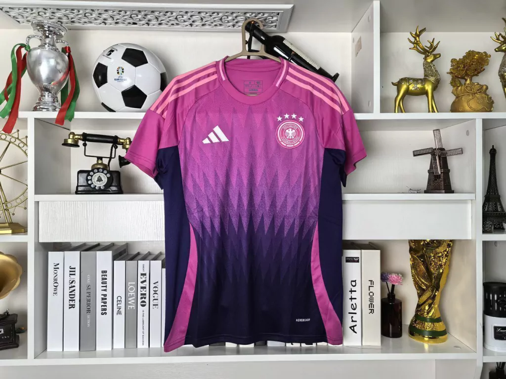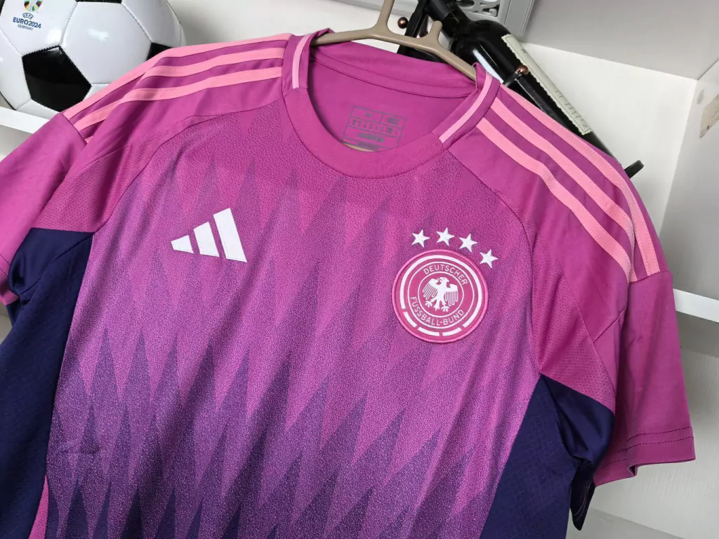Com design que inova sobre o tradicional manto branco, esta Away da seleção alemã traz base predominantemente preta realçada por faixas em vermelho e dourado que remetem às cores da bandeira nacional. Confeccionada em tecido leve de alta performance com tecnologia de controle de umidade e secagem rápida, oferece excelente ventilação e conforto tanto em treinos quanto em partidas internacionais. O corte anatômico proporciona ajuste preciso e liberdade de movimento, ideal para torcedores que desejam exibir seu apoio à “Die Mannschaft” longe dos gramados.